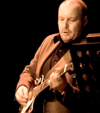 en halvakkustisk Höfner som han koplet til en gammel Kurèr-radio og vips